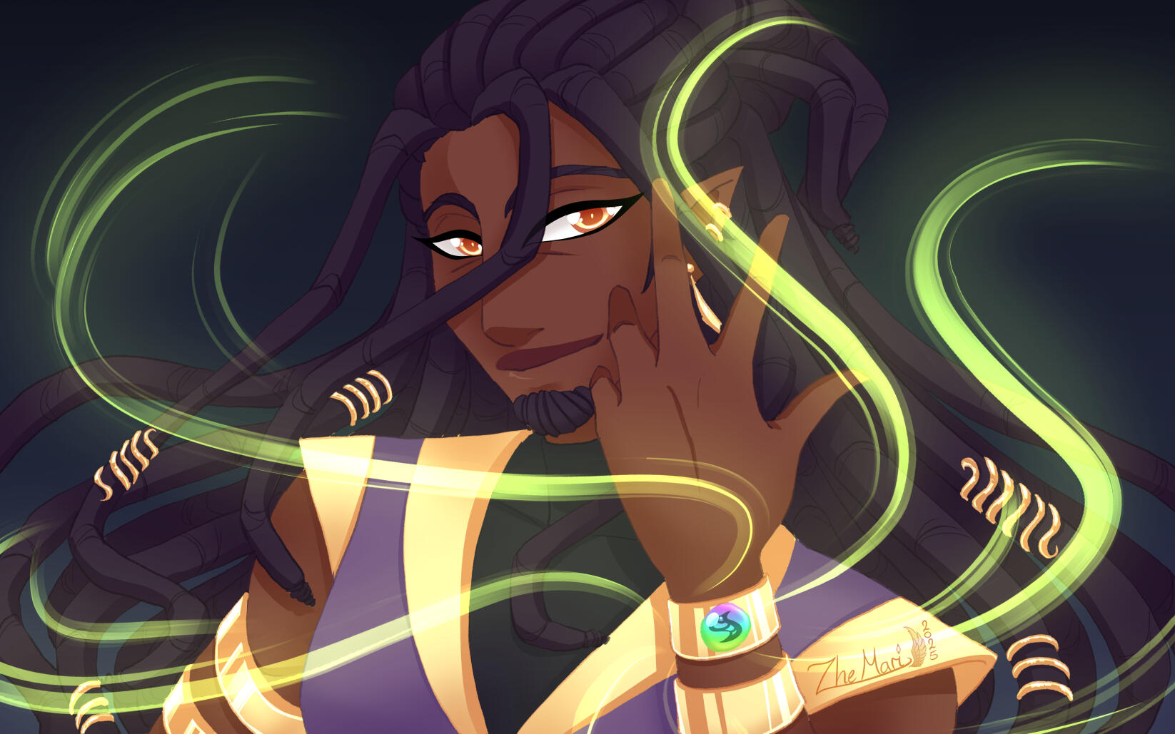 Halfbody character with special effect or magic showcase